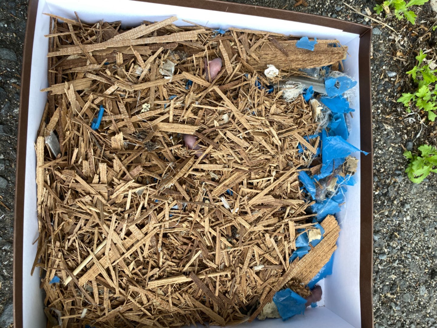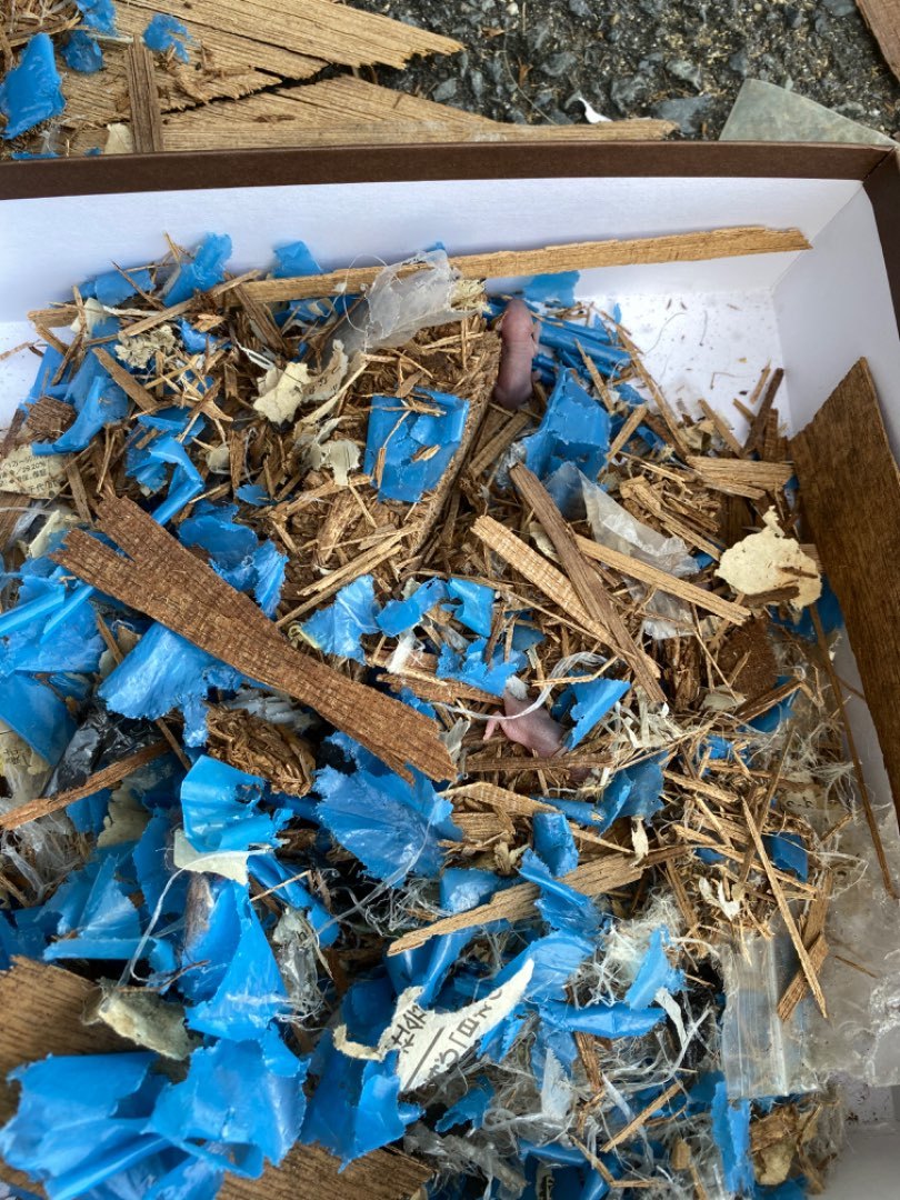 パサパサになったベニア板の塊や細かく砕かれたビニールやワラが底板からいっぱい