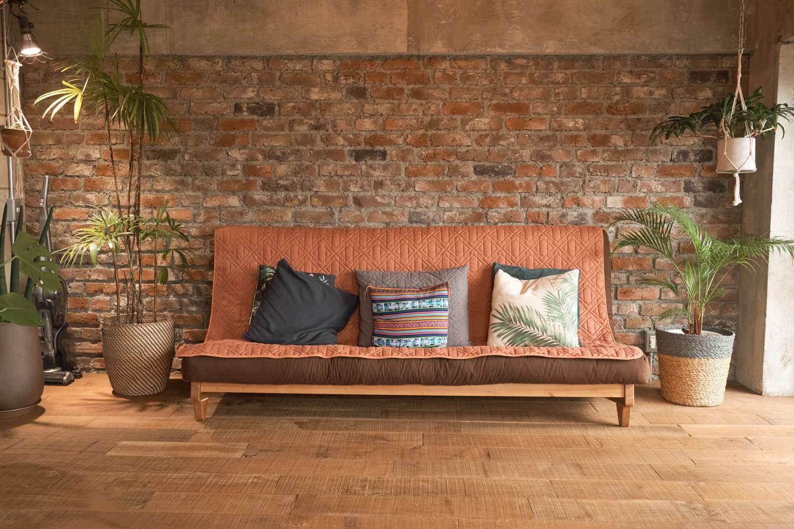 「ブルックリン・スタイル」はレンガや古材などラフな表情をもつ素材をアクセント的に用い、さらに革のソファやアイアンの照明などをあわせるとスタイリッシュな演出ができます。